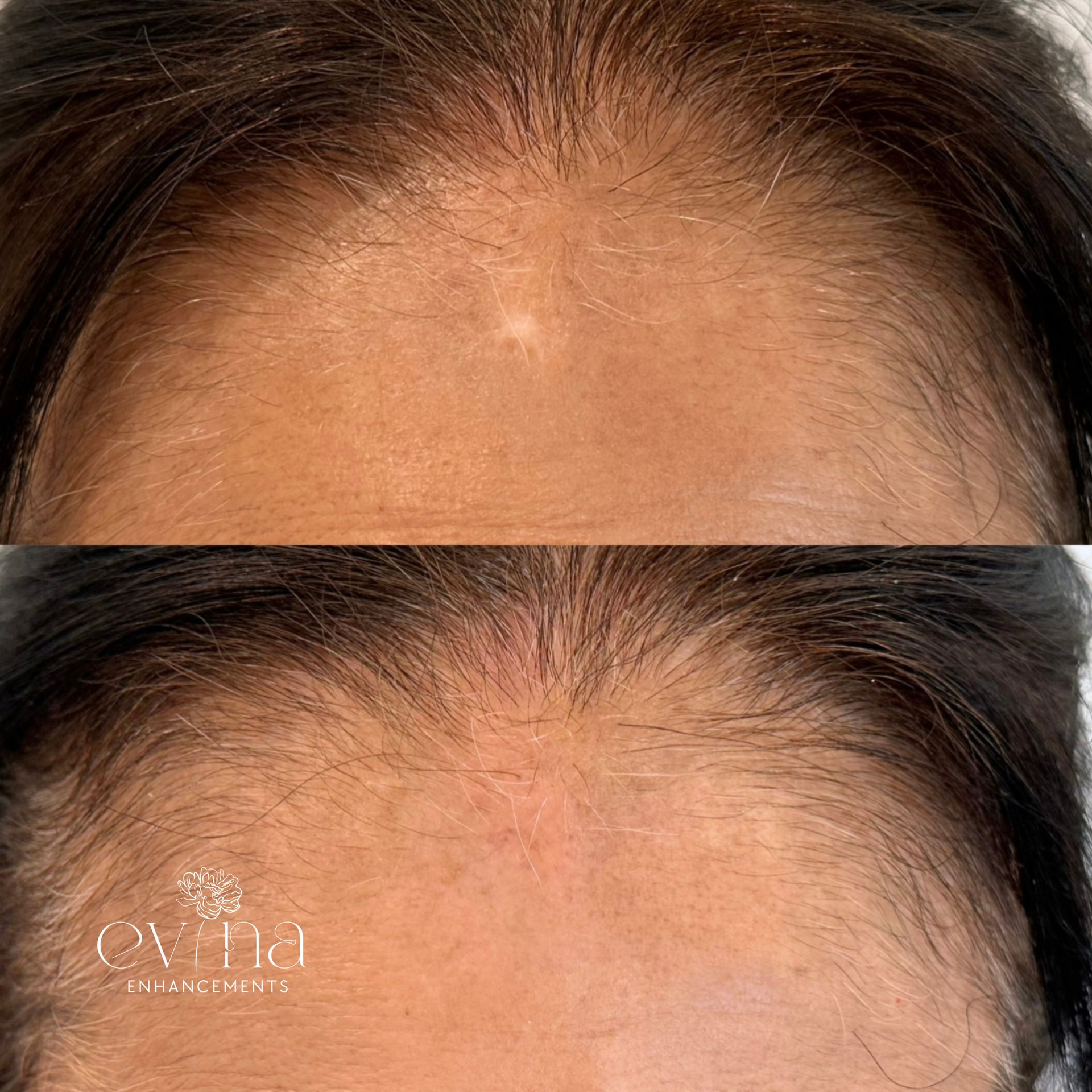 Initial results are visible immediately after the procedure, but the final results will become apparent after the healing process, usually within 4-6 weeks. The color will soften and blend more naturally as the skin heals.