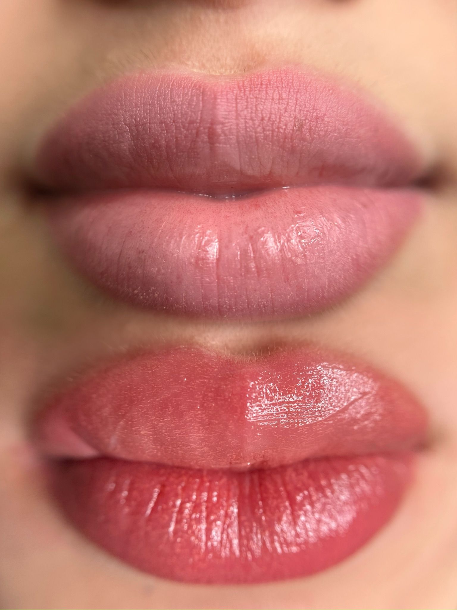 Lips may feel dry and slightly swollen for a few days. Some flaking or peeling is normal as the skin heals, and full color will settle in after about 2 weeks.